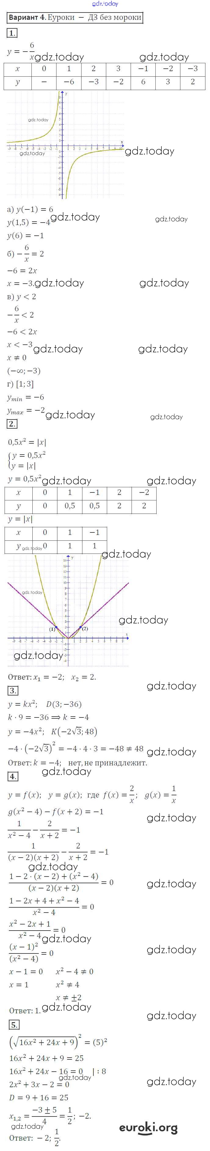 На страницах сайта gdz.today вы найдете учебный и вспомогательный материал, направленный на улучшения знаний школьной программы. ГДЗ - онлайн мир знаний КР-4. Варианты Решение к контрольным работам 4 Контрольным работам по Алгебре для 8 класса Александрова Базовый уровень Мнемозина УМК 2016