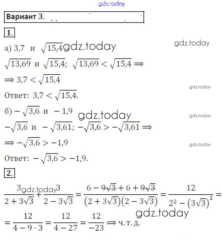 На страницах сайта gdz.today вы найдете учебный и вспомогательный материал, направленный на улучшения знаний школьной программы. ГДЗ - онлайн мир знаний Решение к СР-13. Варианты 3 Самостоятельным работам по Алгебре для 8 класса Александрова Мнемозина 2016
