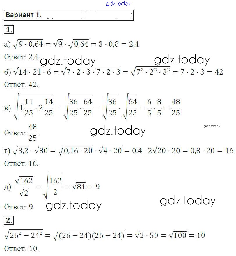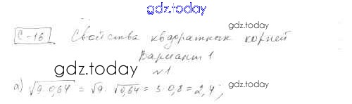 На страницах сайта gdz.today вы найдете учебный и вспомогательный материал, направленный на улучшения знаний школьной программы. ГДЗ - онлайн мир знаний Решение к СР-16. Варианты 1 Самостоятельным работам по Алгебре для 8 класса Александрова Мнемозина 2016