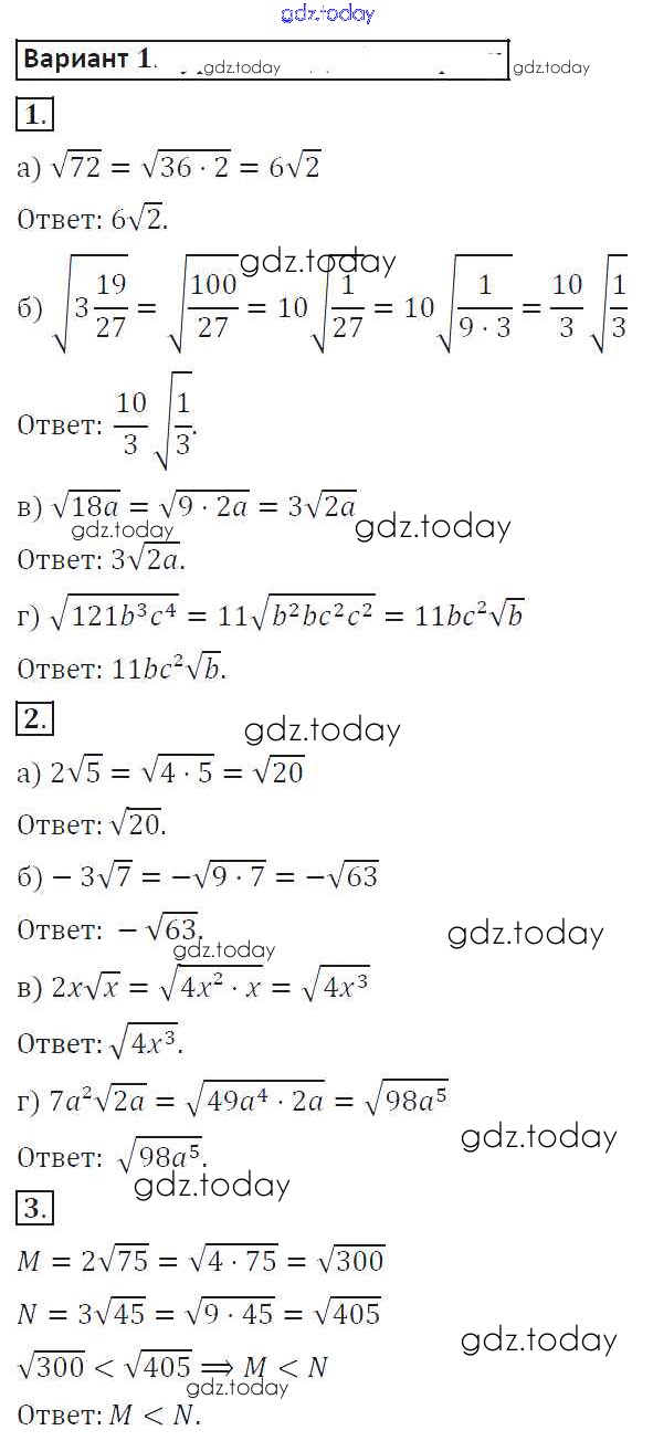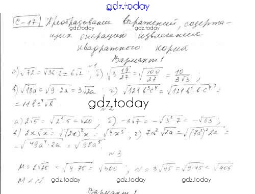 На страницах сайта gdz.today вы найдете учебный и вспомогательный материал, направленный на улучшения знаний школьной программы. ГДЗ - онлайн мир знаний Решение к СР-17. Варианты 1 Самостоятельным работам по Алгебре для 8 класса Александрова Мнемозина 2016