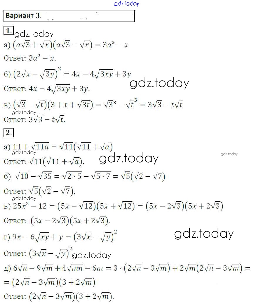 На страницах сайта gdz.today вы найдете учебный и вспомогательный материал, направленный на улучшения знаний школьной программы. ГДЗ - онлайн мир знаний Решение к СР-19. Варианты 3 Самостоятельным работам по Алгебре для 8 класса Александрова Мнемозина 2016