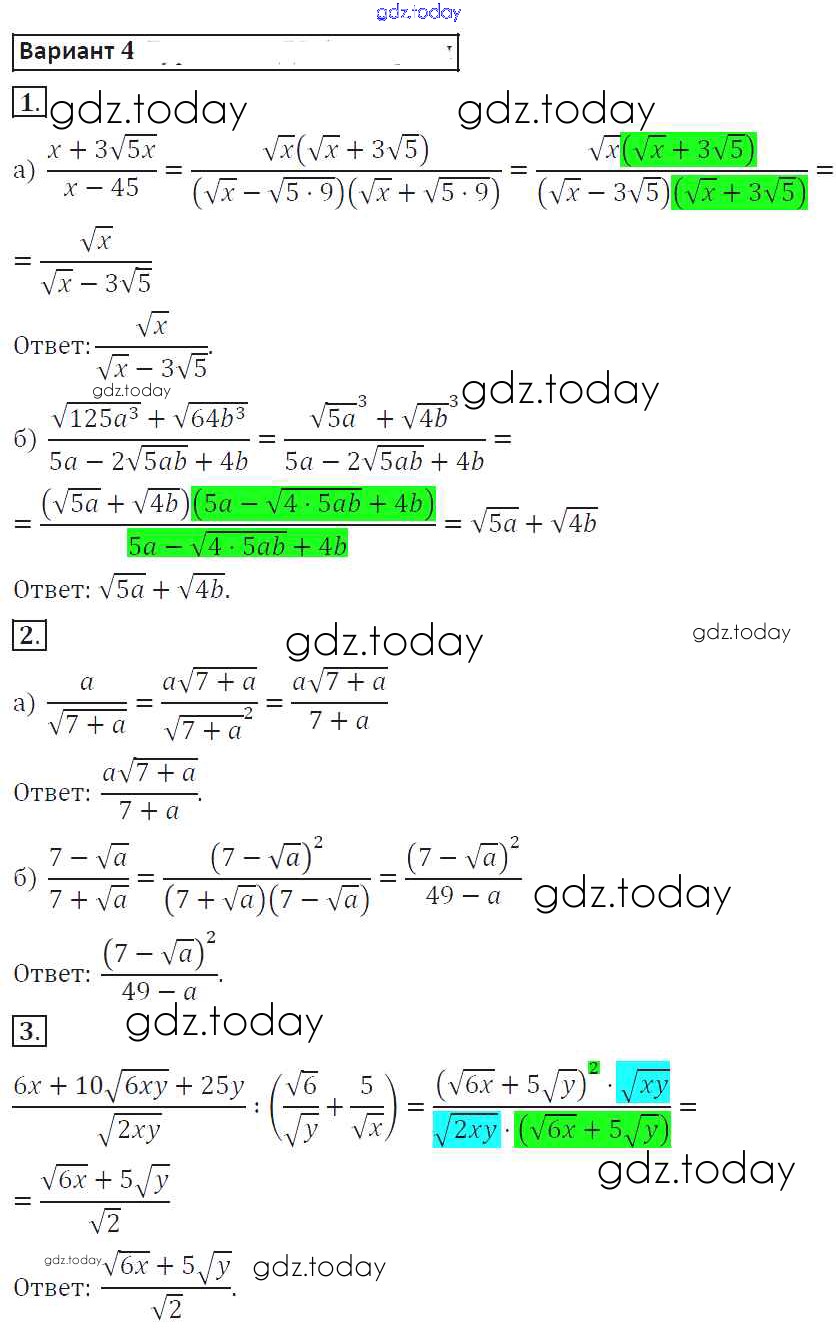 На страницах сайта gdz.today вы найдете учебный и вспомогательный материал, направленный на улучшения знаний школьной программы. ГДЗ - онлайн мир знаний Решение к СР-20. Варианты 4 Самостоятельным работам по Алгебре для 8 класса Александрова Мнемозина 2016