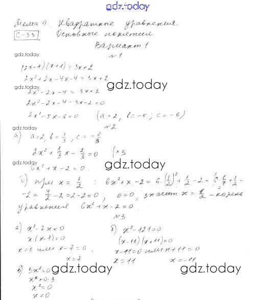 На страницах сайта gdz.today вы найдете учебный и вспомогательный материал, направленный на улучшения знаний школьной программы. ГДЗ - онлайн мир знаний Решение к СР-33. Варианты 1 Самостоятельным работам по Алгебре для 8 класса Александрова Мнемозина 2016