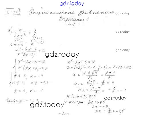 На страницах сайта gdz.today вы найдете учебный и вспомогательный материал, направленный на улучшения знаний школьной программы. ГДЗ - онлайн мир знаний Решение к СР-35. Варианты 1 Самостоятельным работам по Алгебре для 8 класса Александрова Мнемозина 2016