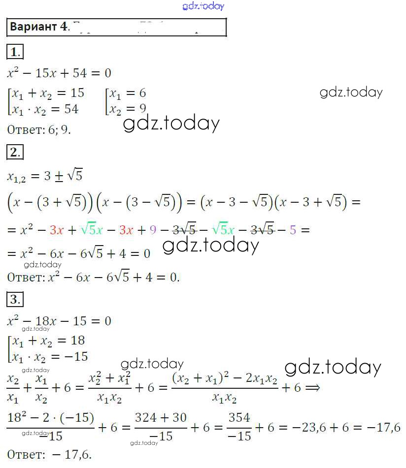 Ответы к Решение к СР-38. Варианты 4 Самостоятельным работам по Алгебре для 8 класса Александрова Мнемозина 2016