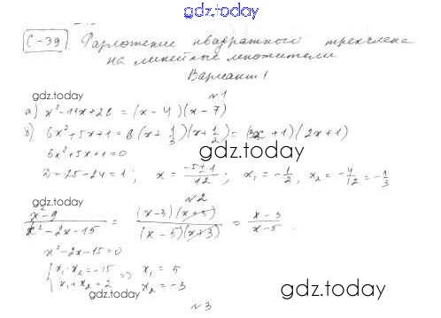 На страницах сайта gdz.today вы найдете учебный и вспомогательный материал, направленный на улучшения знаний школьной программы. ГДЗ - онлайн мир знаний Решение к СР-39. Варианты 1 Самостоятельным работам по Алгебре для 8 класса Александрова Мнемозина 2016