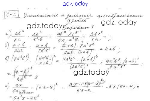 На страницах сайта gdz.today вы найдете учебный и вспомогательный материал, направленный на улучшения знаний школьной программы. ГДЗ - онлайн мир знаний Решение к СР-6. Варианты 1 Самостоятельным работам по Алгебре для 8 класса Александрова Мнемозина 2016