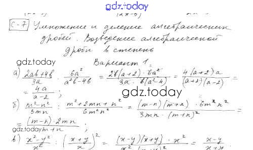 На страницах сайта gdz.today вы найдете учебный и вспомогательный материал, направленный на улучшения знаний школьной программы. ГДЗ - онлайн мир знаний Решение к СР-7. Варианты 1 Самостоятельным работам по Алгебре для 8 класса Александрова Мнемозина 2016