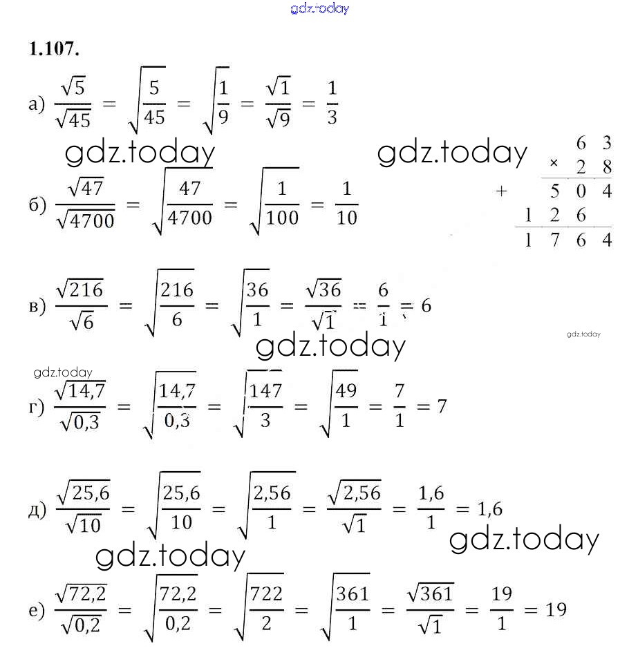 На страницах сайта gdz.today вы найдете учебный и вспомогательный материал, направленный на улучшения знаний школьной программы. ГДЗ - онлайн мир знаний Упражнения Решение. Глава 1 1.107 Учебнику по Алгебре для 8 класса Арефьева, Пирютко Народная асвета 2018