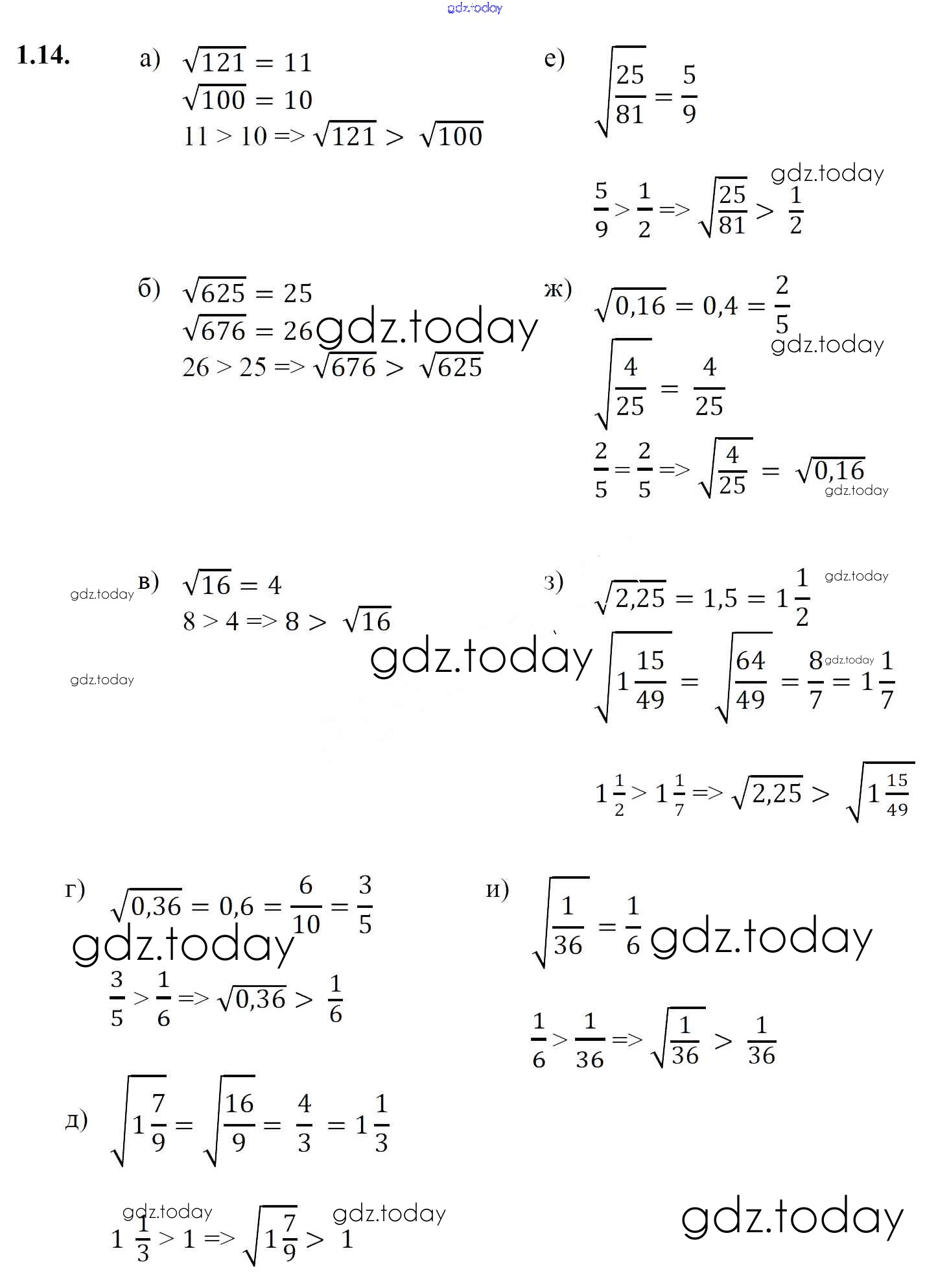 На страницах сайта gdz.today вы найдете учебный и вспомогательный материал, направленный на улучшения знаний школьной программы. ГДЗ - онлайн мир знаний Упражнения Решение. Глава 1 1.14 Учебнику по Алгебре для 8 класса Арефьева, Пирютко Народная асвета 2018