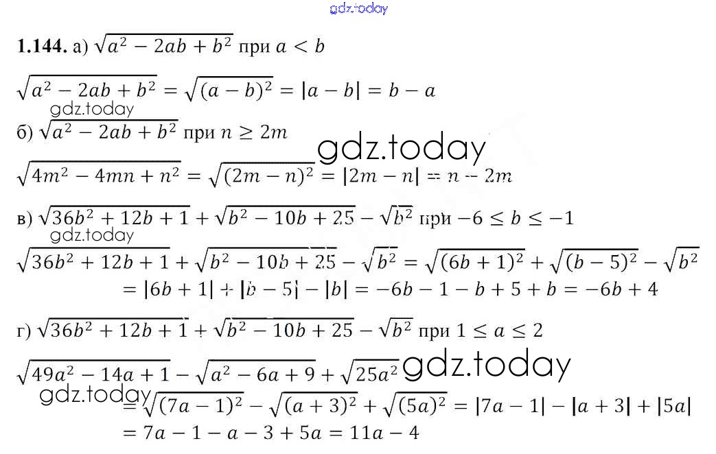 На страницах сайта gdz.today вы найдете учебный и вспомогательный материал, направленный на улучшения знаний школьной программы. ГДЗ - онлайн мир знаний Упражнения Решение. Глава 1 1.144 Учебнику по Алгебре для 8 класса Арефьева, Пирютко Народная асвета 2018