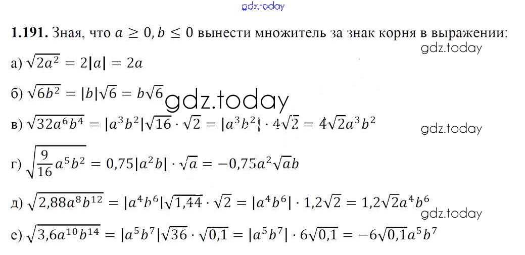 На страницах сайта gdz.today вы найдете учебный и вспомогательный материал, направленный на улучшения знаний школьной программы. ГДЗ - онлайн мир знаний Упражнения Решение. Глава 1 1.191 Учебнику по Алгебре для 8 класса Арефьева, Пирютко Народная асвета 2018