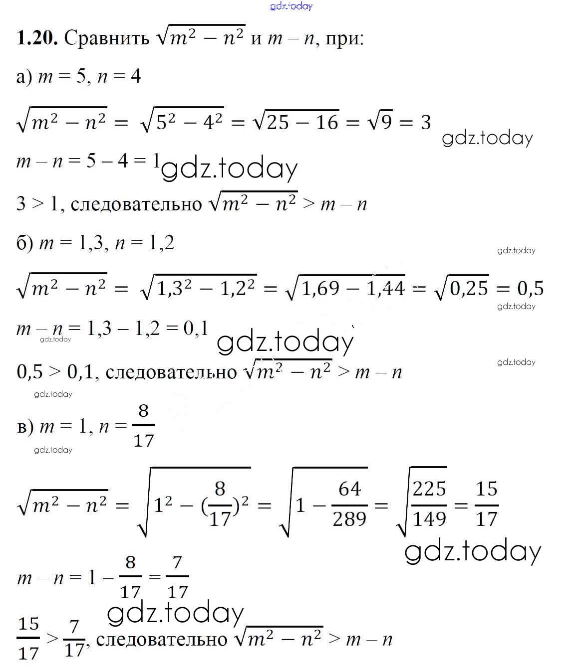 На страницах сайта gdz.today вы найдете учебный и вспомогательный материал, направленный на улучшения знаний школьной программы. ГДЗ - онлайн мир знаний Упражнения Решение. Глава 1 1.20 Учебнику по Алгебре для 8 класса Арефьева, Пирютко Народная асвета 2018