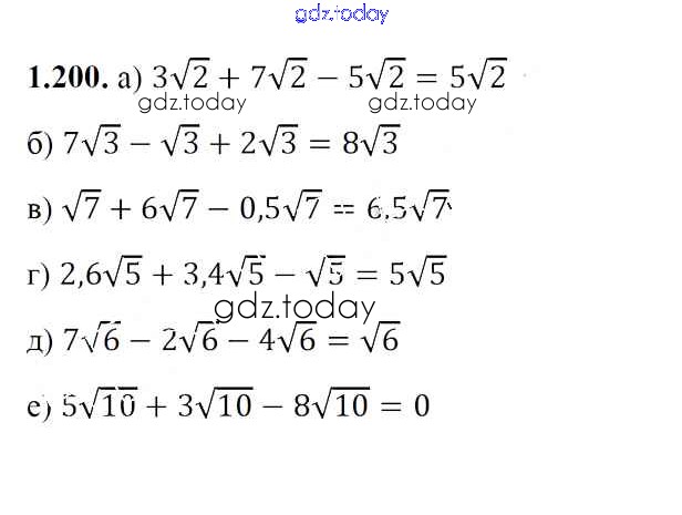 На страницах сайта gdz.today вы найдете учебный и вспомогательный материал, направленный на улучшения знаний школьной программы. ГДЗ - онлайн мир знаний Упражнения Решение. Глава 1 1.200 Учебнику по Алгебре для 8 класса Арефьева, Пирютко Народная асвета 2018