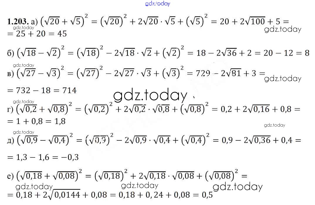 На страницах сайта gdz.today вы найдете учебный и вспомогательный материал, направленный на улучшения знаний школьной программы. ГДЗ - онлайн мир знаний Упражнения Решение. Глава 1 1.203 Учебнику по Алгебре для 8 класса Арефьева, Пирютко Народная асвета 2018