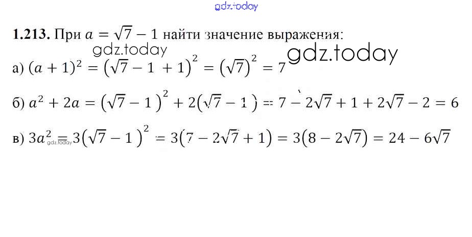 На страницах сайта gdz.today вы найдете учебный и вспомогательный материал, направленный на улучшения знаний школьной программы. ГДЗ - онлайн мир знаний Упражнения Решение. Глава 1 1.213 Учебнику по Алгебре для 8 класса Арефьева, Пирютко Народная асвета 2018