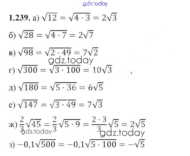На страницах сайта gdz.today вы найдете учебный и вспомогательный материал, направленный на улучшения знаний школьной программы. ГДЗ - онлайн мир знаний Упражнения Решение. Глава 1 1.239 Учебнику по Алгебре для 8 класса Арефьева, Пирютко Народная асвета 2018