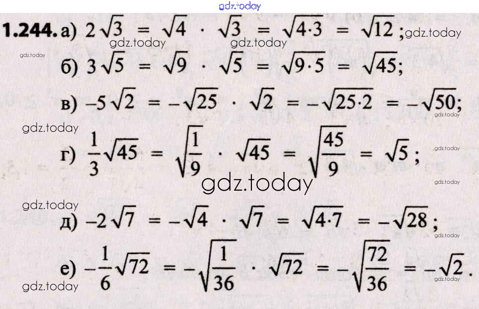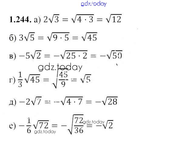 На страницах сайта gdz.today вы найдете учебный и вспомогательный материал, направленный на улучшения знаний школьной программы. ГДЗ - онлайн мир знаний Упражнения Решение. Глава 1 1.244 Учебнику по Алгебре для 8 класса Арефьева, Пирютко Народная асвета 2018