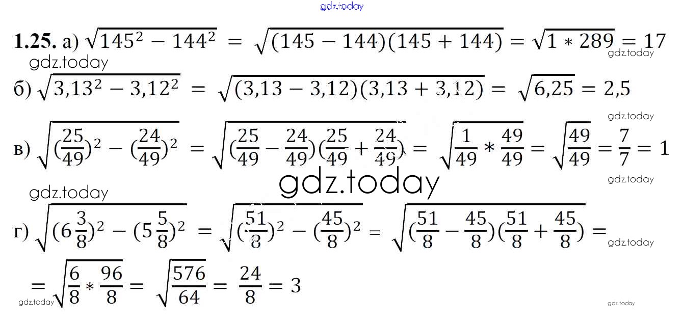 На страницах сайта gdz.today вы найдете учебный и вспомогательный материал, направленный на улучшения знаний школьной программы. ГДЗ - онлайн мир знаний Упражнения Решение. Глава 1 1.25 Учебнику по Алгебре для 8 класса Арефьева, Пирютко Народная асвета 2018