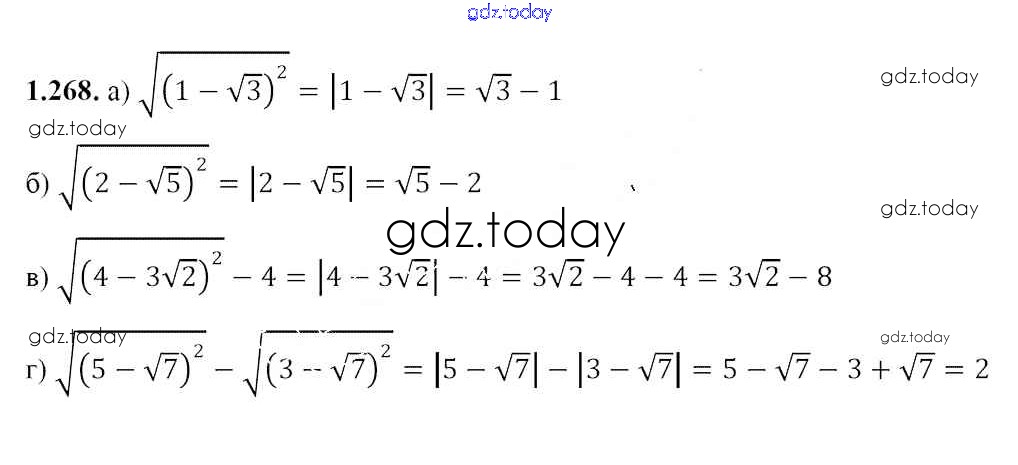 На страницах сайта gdz.today вы найдете учебный и вспомогательный материал, направленный на улучшения знаний школьной программы. ГДЗ - онлайн мир знаний Упражнения Решение. Глава 1 1.268 Учебнику по Алгебре для 8 класса Арефьева, Пирютко Народная асвета 2018