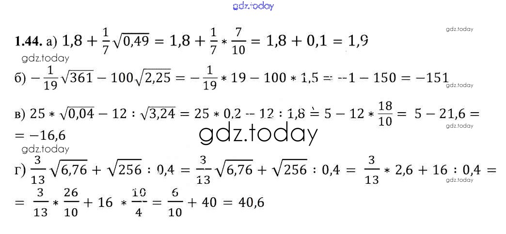 На страницах сайта gdz.today вы найдете учебный и вспомогательный материал, направленный на улучшения знаний школьной программы. ГДЗ - онлайн мир знаний Упражнения Решение. Глава 1 1.44 Учебнику по Алгебре для 8 класса Арефьева, Пирютко Народная асвета 2018