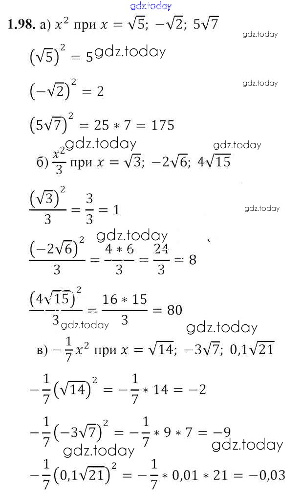 Ответы к Упражнения Решение. Глава 1 1.98 Учебнику по Алгебре для 8 класса Арефьева, Пирютко Народная асвета 2018
