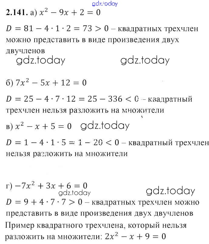 На страницах сайта gdz.today вы найдете учебный и вспомогательный материал, направленный на улучшения знаний школьной программы. ГДЗ - онлайн мир знаний Упражнения Решение. Глава 2 2.141 Учебнику по Алгебре для 8 класса Арефьева, Пирютко Народная асвета 2018
