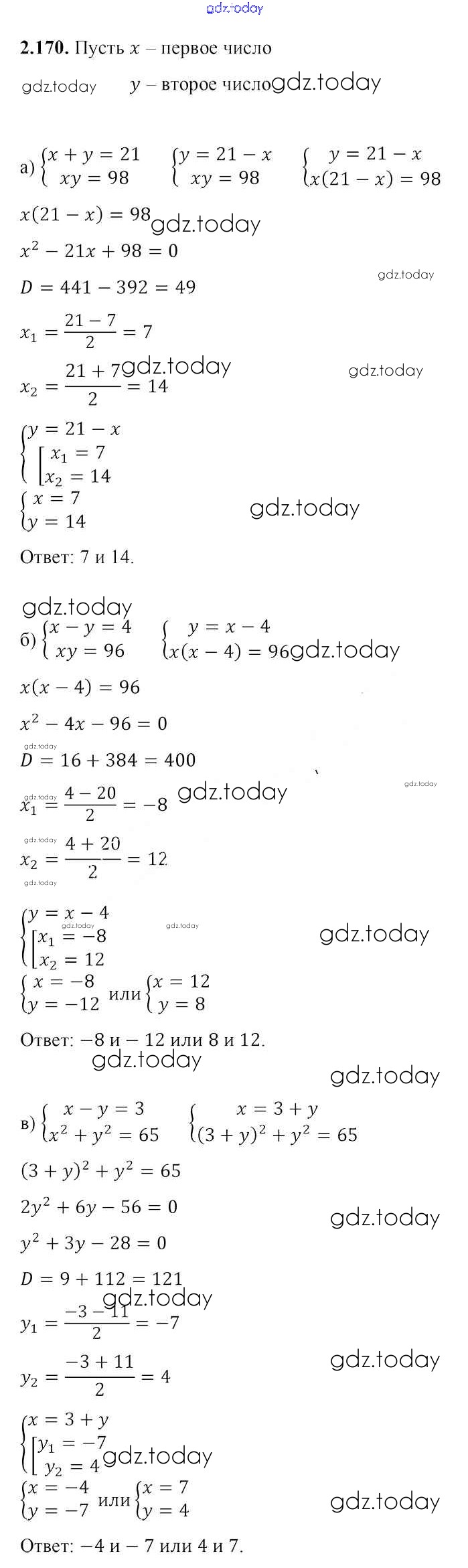 На страницах сайта gdz.today вы найдете учебный и вспомогательный материал, направленный на улучшения знаний школьной программы. ГДЗ - онлайн мир знаний Упражнения Решение. Глава 2 2.170 Учебнику по Алгебре для 8 класса Арефьева, Пирютко Народная асвета 2018
