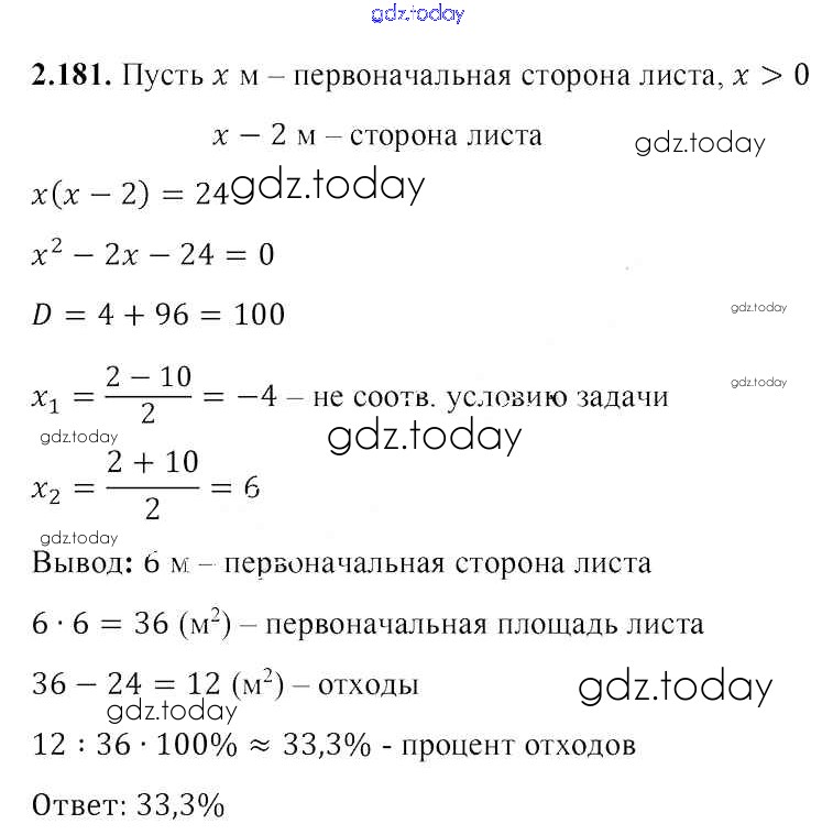 На страницах сайта gdz.today вы найдете учебный и вспомогательный материал, направленный на улучшения знаний школьной программы. ГДЗ - онлайн мир знаний Упражнения Решение. Глава 2 2.181 Учебнику по Алгебре для 8 класса Арефьева, Пирютко Народная асвета 2018