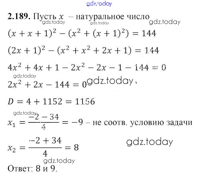 На страницах сайта gdz.today вы найдете учебный и вспомогательный материал, направленный на улучшения знаний школьной программы. ГДЗ - онлайн мир знаний Упражнения Решение. Глава 2 2.189 Учебнику по Алгебре для 8 класса Арефьева, Пирютко Народная асвета 2018