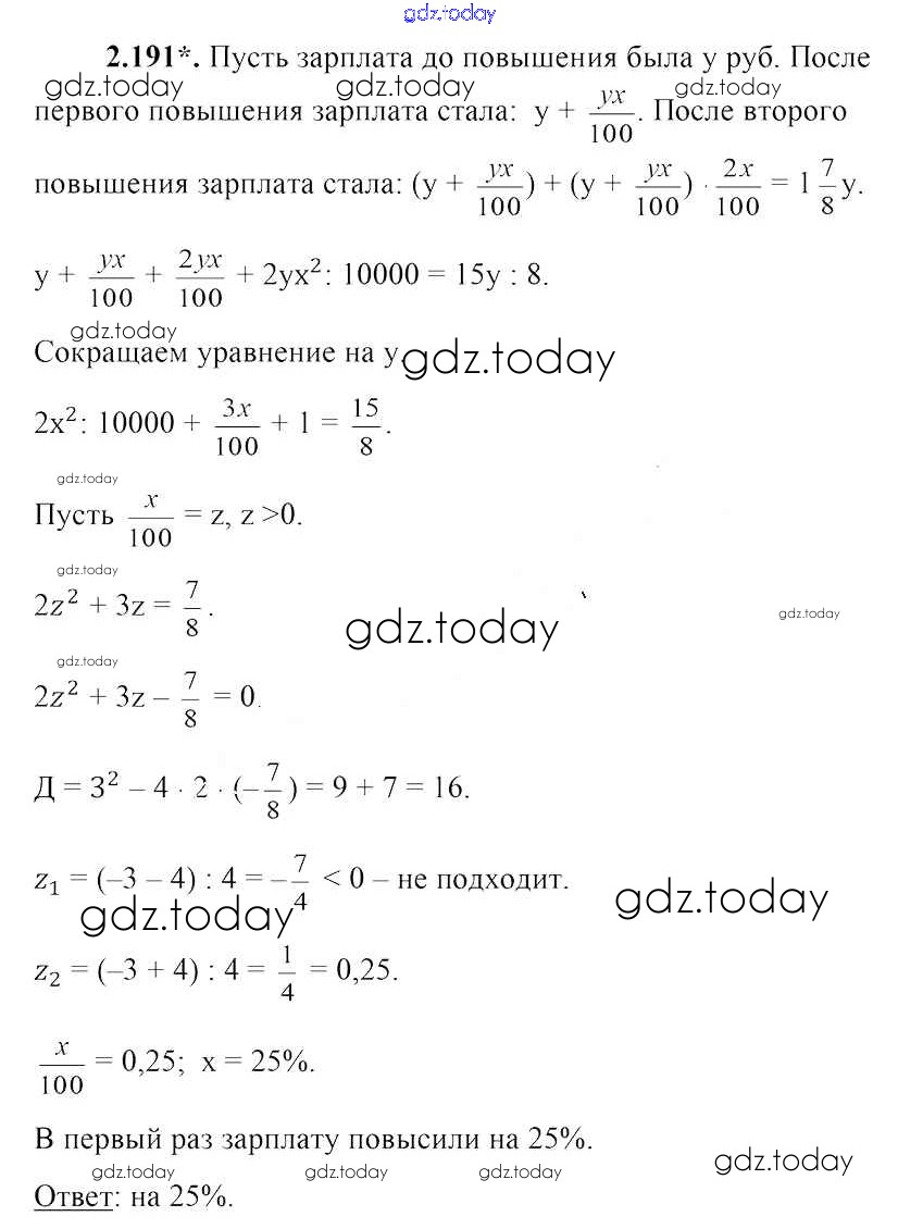 На страницах сайта gdz.today вы найдете учебный и вспомогательный материал, направленный на улучшения знаний школьной программы. ГДЗ - онлайн мир знаний Упражнения Решение. Глава 2 2.191 Учебнику по Алгебре для 8 класса Арефьева, Пирютко Народная асвета 2018