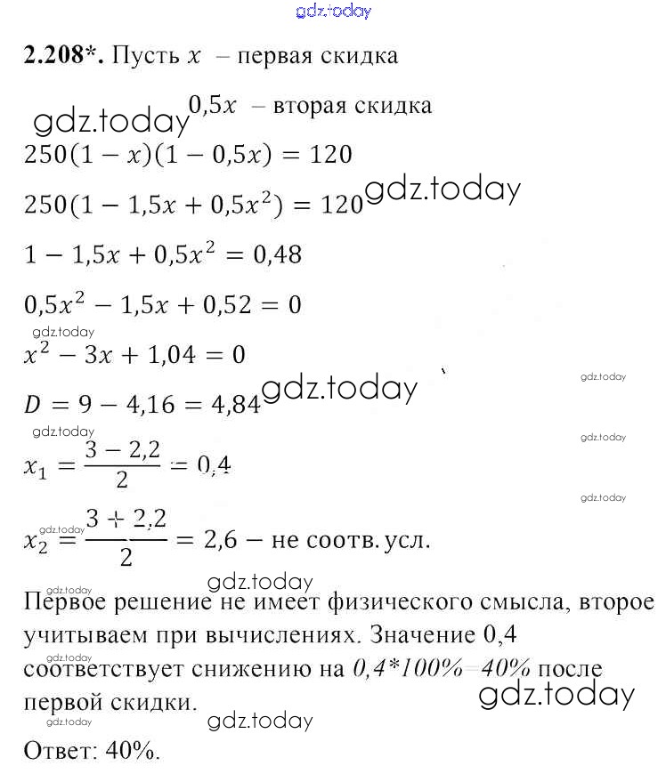 Ответы к Упражнения Решение. Глава 2 2.208 Учебнику по Алгебре для 8 класса Арефьева, Пирютко Народная асвета 2018