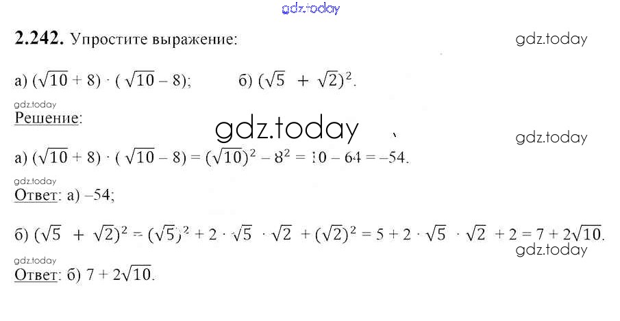 На страницах сайта gdz.today вы найдете учебный и вспомогательный материал, направленный на улучшения знаний школьной программы. ГДЗ - онлайн мир знаний Упражнения Решение. Глава 2 2.242 Учебнику по Алгебре для 8 класса Арефьева, Пирютко Народная асвета 2018