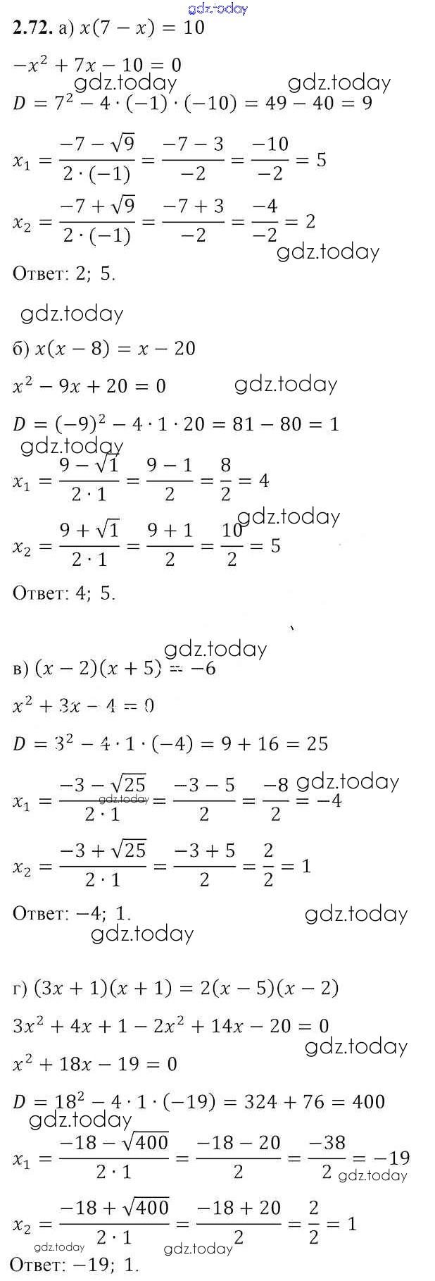 На страницах сайта gdz.today вы найдете учебный и вспомогательный материал, направленный на улучшения знаний школьной программы. ГДЗ - онлайн мир знаний Упражнения Решение. Глава 2 2.72 Учебнику по Алгебре для 8 класса Арефьева, Пирютко Народная асвета 2018