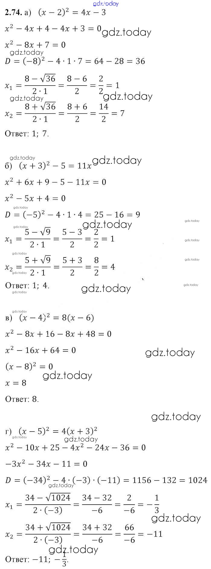 На страницах сайта gdz.today вы найдете учебный и вспомогательный материал, направленный на улучшения знаний школьной программы. ГДЗ - онлайн мир знаний Упражнения Решение. Глава 2 2.74 Учебнику по Алгебре для 8 класса Арефьева, Пирютко Народная асвета 2018