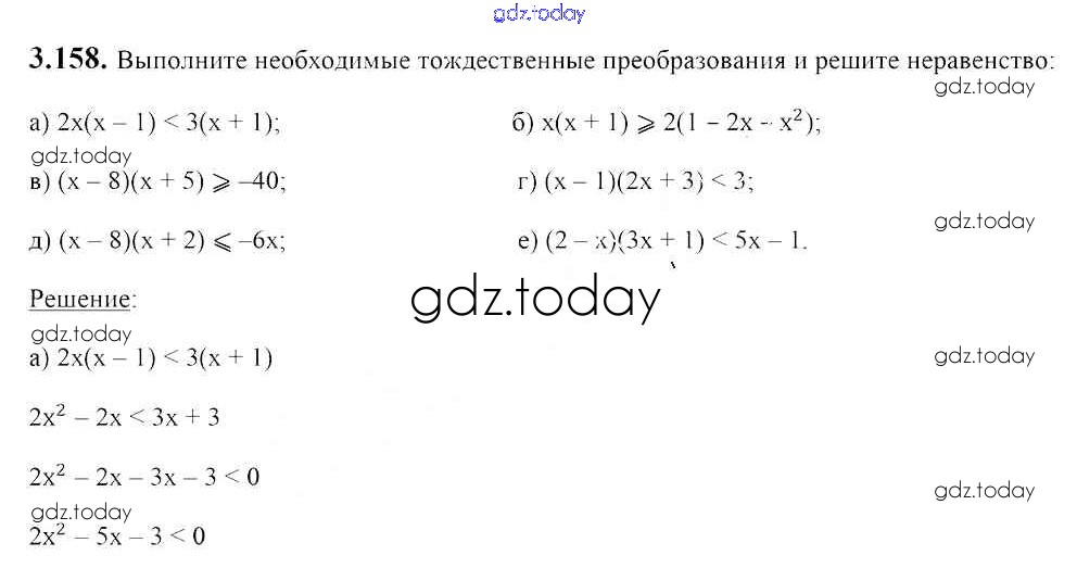 На страницах сайта gdz.today вы найдете учебный и вспомогательный материал, направленный на улучшения знаний школьной программы. ГДЗ - онлайн мир знаний Упражнения Решение. Глава 3 3.158 Учебнику по Алгебре для 8 класса Арефьева, Пирютко Народная асвета 2018