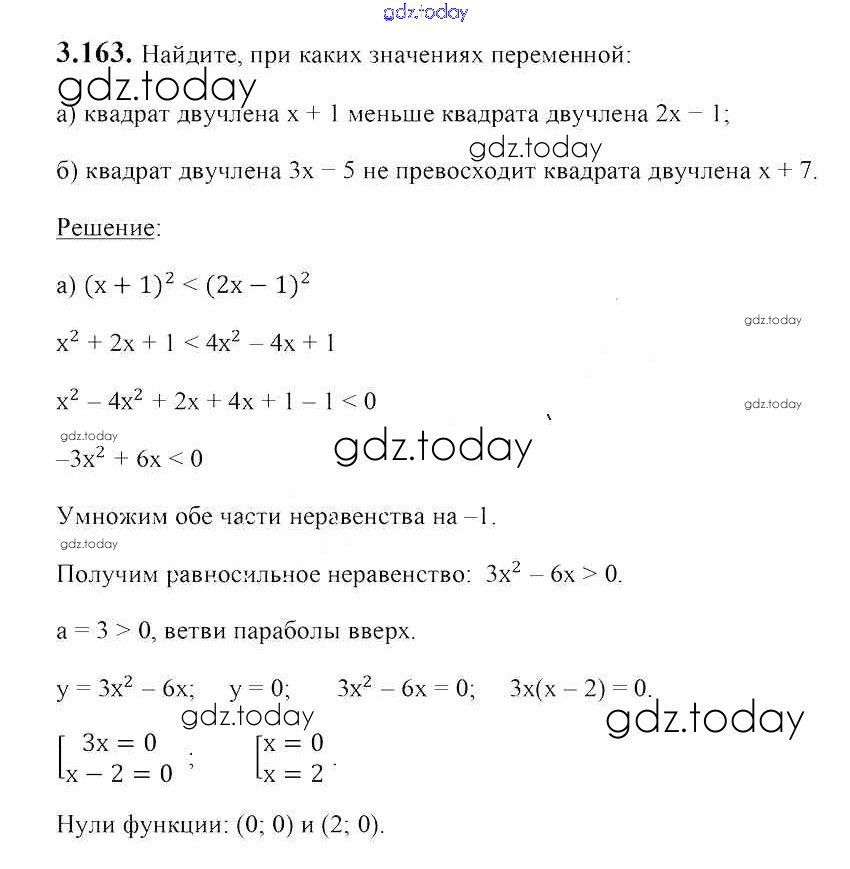 На страницах сайта gdz.today вы найдете учебный и вспомогательный материал, направленный на улучшения знаний школьной программы. ГДЗ - онлайн мир знаний Упражнения Решение. Глава 3 3.163 Учебнику по Алгебре для 8 класса Арефьева, Пирютко Народная асвета 2018