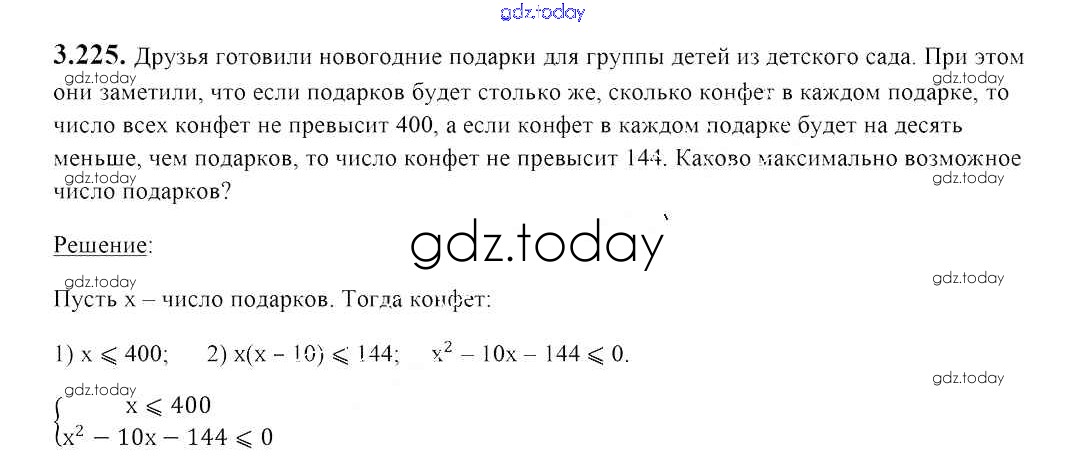На страницах сайта gdz.today вы найдете учебный и вспомогательный материал, направленный на улучшения знаний школьной программы. ГДЗ - онлайн мир знаний Упражнения Решение. Глава 3 3.225 Учебнику по Алгебре для 8 класса Арефьева, Пирютко Народная асвета 2018