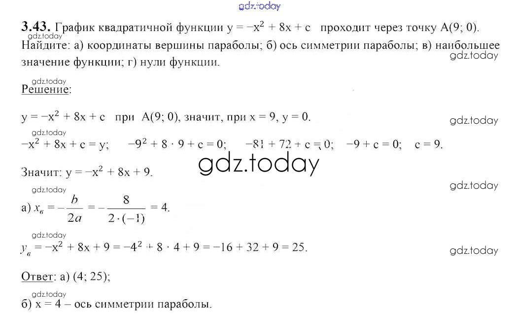 На страницах сайта gdz.today вы найдете учебный и вспомогательный материал, направленный на улучшения знаний школьной программы. ГДЗ - онлайн мир знаний Упражнения Решение. Глава 3 3.43 Учебнику по Алгебре для 8 класса Арефьева, Пирютко Народная асвета 2018