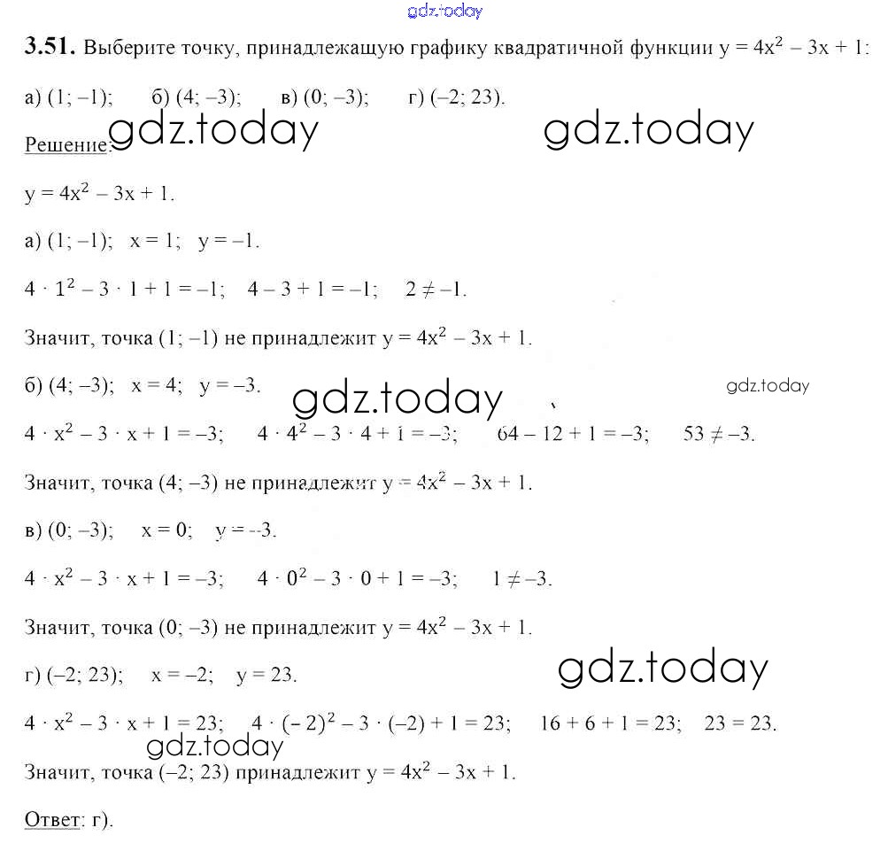 На страницах сайта gdz.today вы найдете учебный и вспомогательный материал, направленный на улучшения знаний школьной программы. ГДЗ - онлайн мир знаний Упражнения Решение. Глава 3 3.51 Учебнику по Алгебре для 8 класса Арефьева, Пирютко Народная асвета 2018