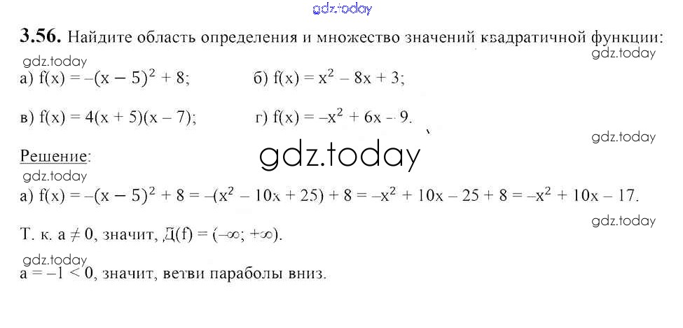 На страницах сайта gdz.today вы найдете учебный и вспомогательный материал, направленный на улучшения знаний школьной программы. ГДЗ - онлайн мир знаний Упражнения Решение. Глава 3 3.56 Учебнику по Алгебре для 8 класса Арефьева, Пирютко Народная асвета 2018
