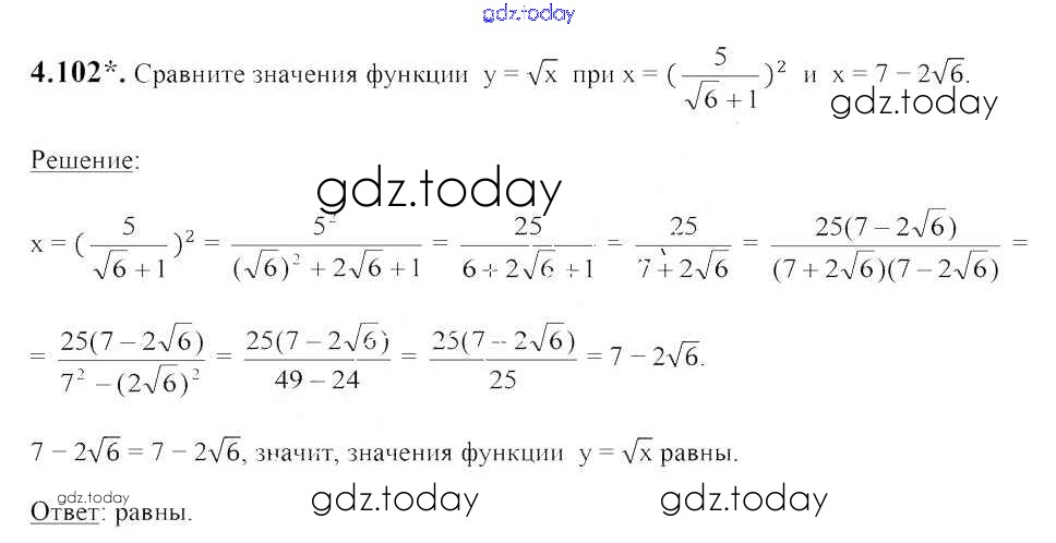 На страницах сайта gdz.today вы найдете учебный и вспомогательный материал, направленный на улучшения знаний школьной программы. ГДЗ - онлайн мир знаний Упражнения Решение. Глава 4 4.102 Учебнику по Алгебре для 8 класса Арефьева, Пирютко Народная асвета 2018