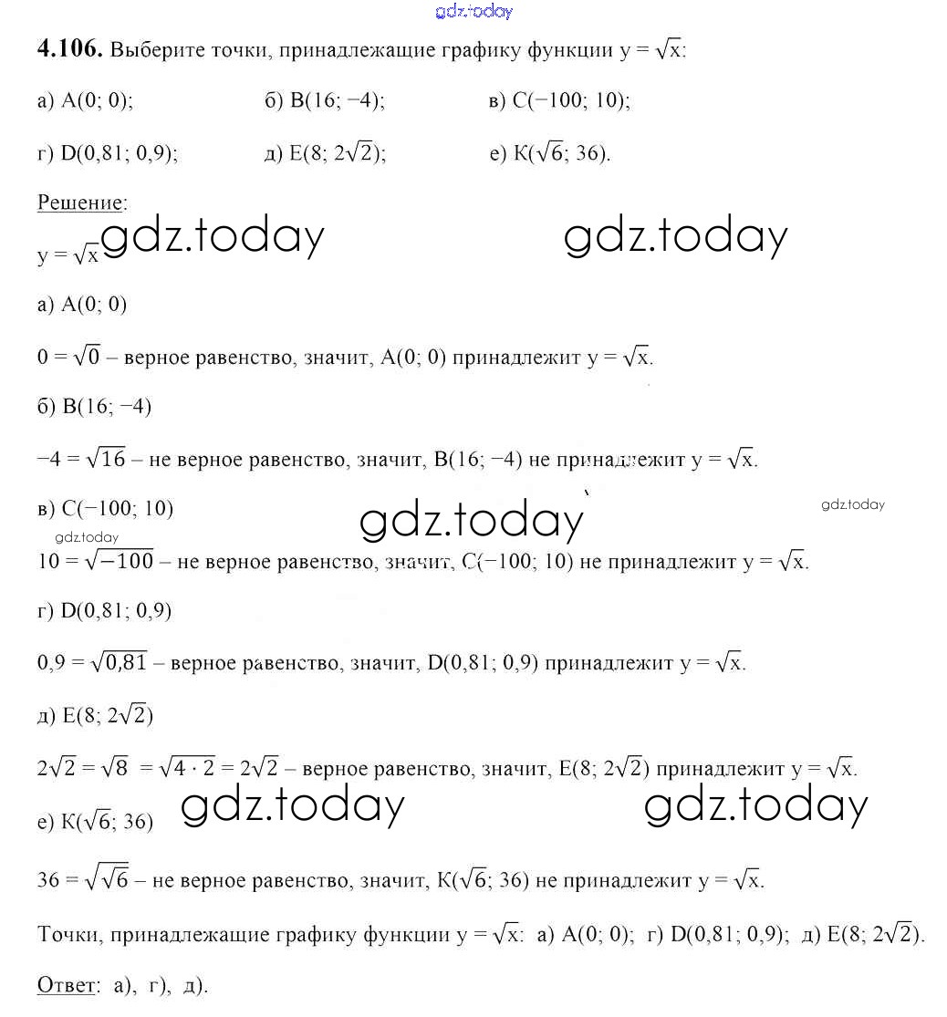 На страницах сайта gdz.today вы найдете учебный и вспомогательный материал, направленный на улучшения знаний школьной программы. ГДЗ - онлайн мир знаний Упражнения Решение. Глава 4 4.106 Учебнику по Алгебре для 8 класса Арефьева, Пирютко Народная асвета 2018