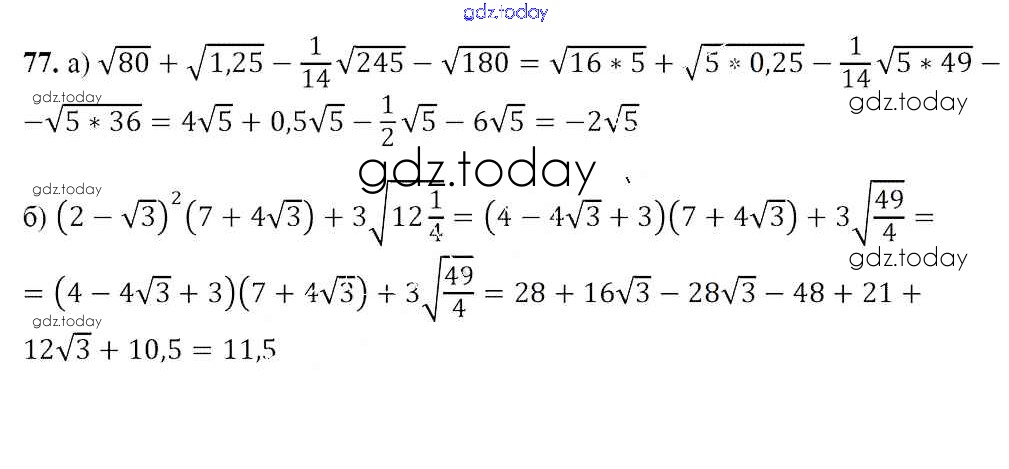 На страницах сайта gdz.today вы найдете учебный и вспомогательный материал, направленный на улучшения знаний школьной программы. ГДЗ - онлайн мир знаний Решение. Повторение 77 Учебнику по Алгебре для 8 класса Арефьева, Пирютко Народная асвета 2018