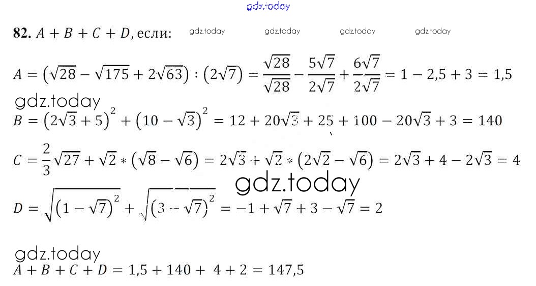 На страницах сайта gdz.today вы найдете учебный и вспомогательный материал, направленный на улучшения знаний школьной программы. ГДЗ - онлайн мир знаний Решение. Повторение 82 Учебнику по Алгебре для 8 класса Арефьева, Пирютко Народная асвета 2018