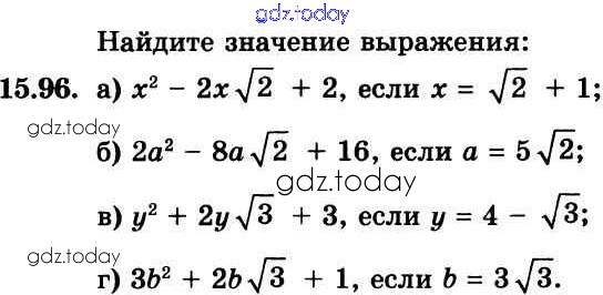 На страницах сайта gdz.today вы найдете учебный и вспомогательный материал, направленный на улучшения знаний школьной программы. ГДЗ - онлайн мир знаний Решение к параграфу 15 96 Задачнику по Алгебре для 8 класса Мишустина, Мордкович Базовый уровень Мнемозина 2015