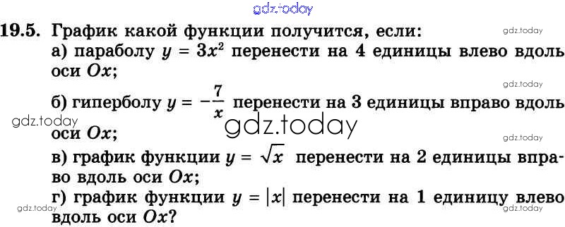 На страницах сайта gdz.today вы найдете учебный и вспомогательный материал, направленный на улучшения знаний школьной программы. ГДЗ - онлайн мир знаний Решение к параграфу 19 5 Задачнику по Алгебре для 8 класса Мишустина, Мордкович Базовый уровень Мнемозина 2015