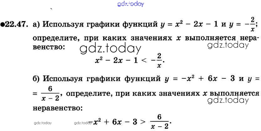 На страницах сайта gdz.today вы найдете учебный и вспомогательный материал, направленный на улучшения знаний школьной программы. ГДЗ - онлайн мир знаний Решение к параграфу 22 47 Задачнику по Алгебре для 8 класса Мишустина, Мордкович Базовый уровень Мнемозина 2015