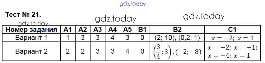 Ответы к Тесты 21 Контрольно-измерительным материалам (КИМ) по Алгебре для 8 класса Черноруцкий ВАКО 2018