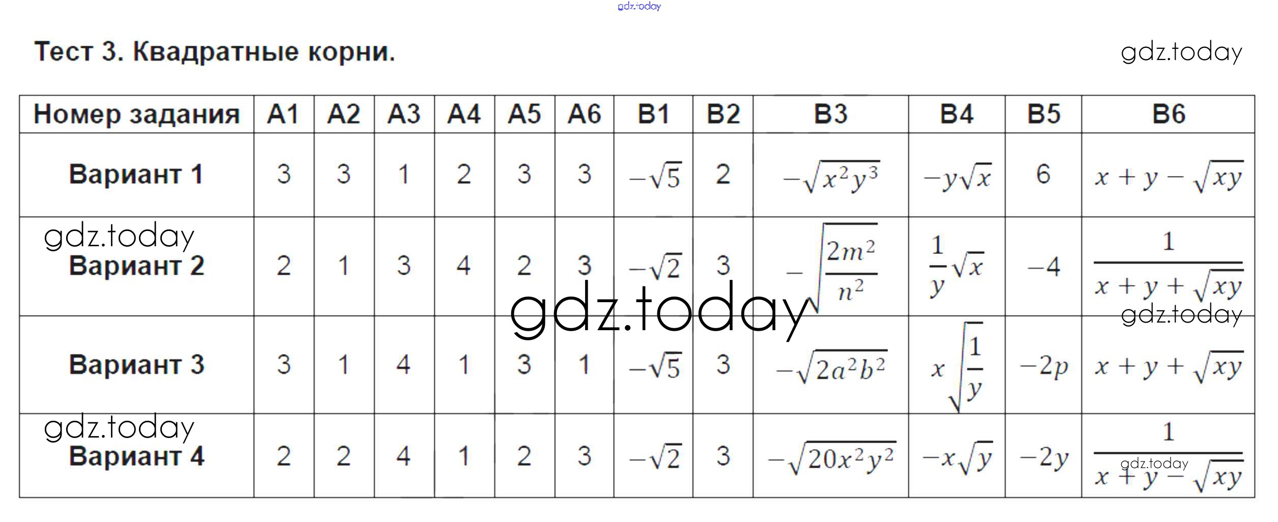 На страницах сайта gdz.today вы найдете учебный и вспомогательный материал, направленный на улучшения знаний школьной программы. ГДЗ - онлайн мир знаний Решение к тестам 3 Тематическим тестам по Алгебре для 8 класса Чулков, Струков Просвещение МГУ - школе 2012